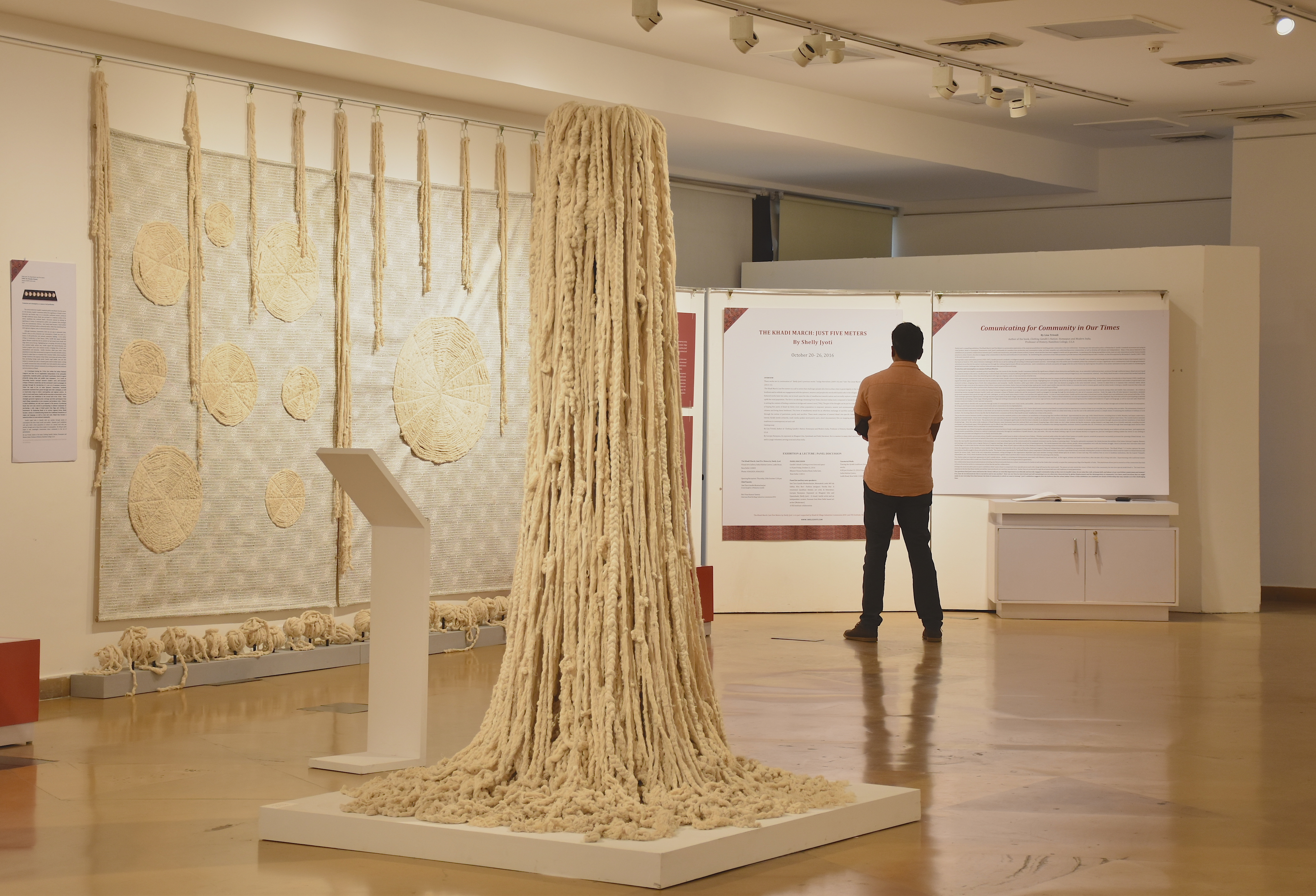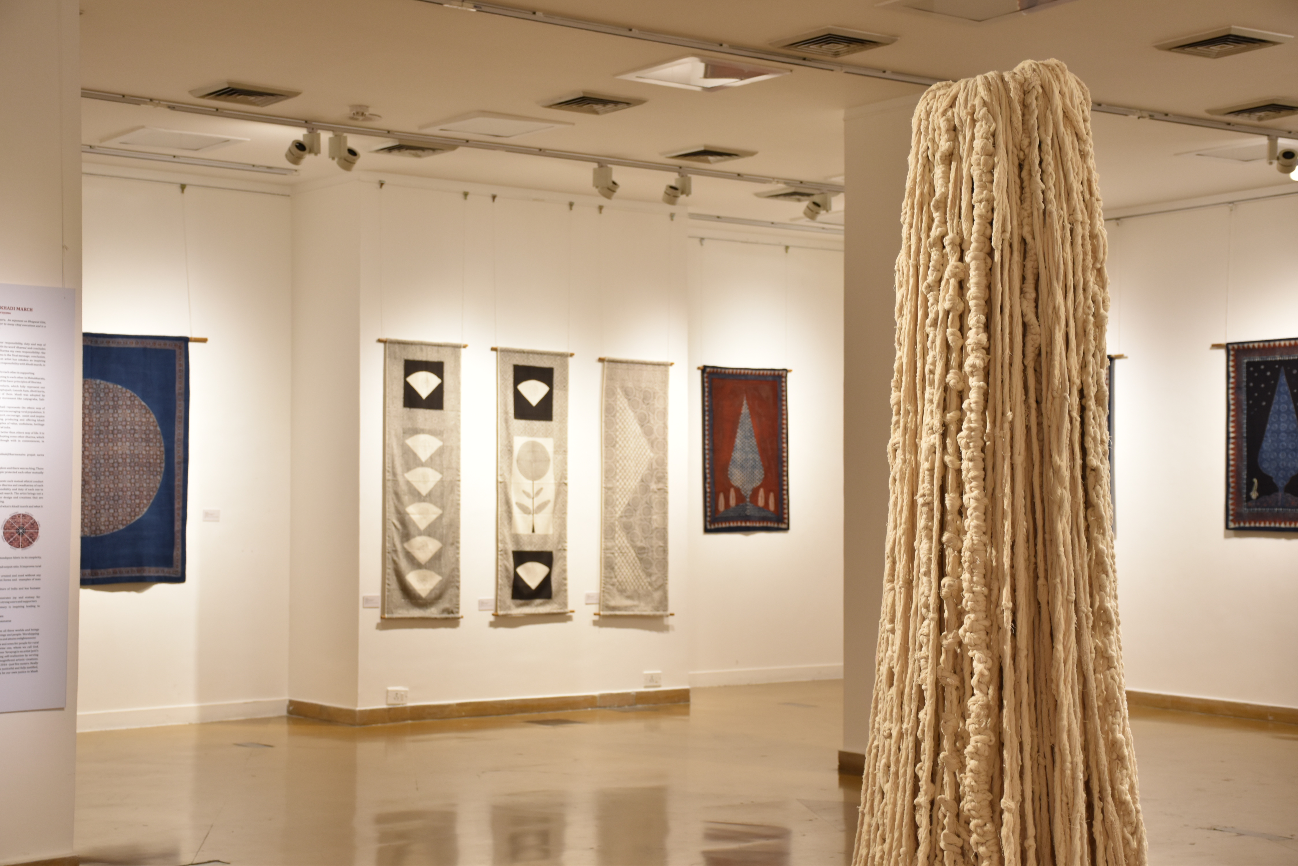 The exhibition THE KHADI MARCH : JUST FIVE METERS at National Gallery of Modern Art is in conjunction with Indira Gandhi National Centre for Arts, New Delhi and in part supported by Khadi & Village Industries Commission and YES Institute